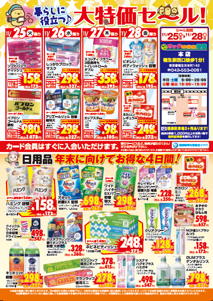 2025年 11月25(火)~11月28日(金)までの4日間チラシセール開催‼